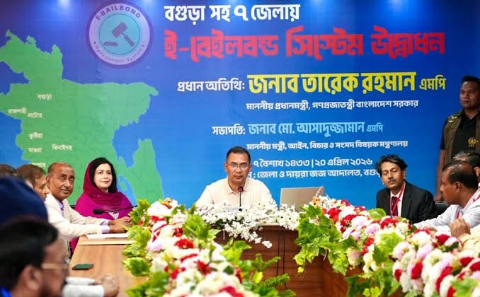 Prime Minister Tarique Rahman on Monday formally inaugurated the e-bail bond service at the Bogura Judge Court during his visit to the district.