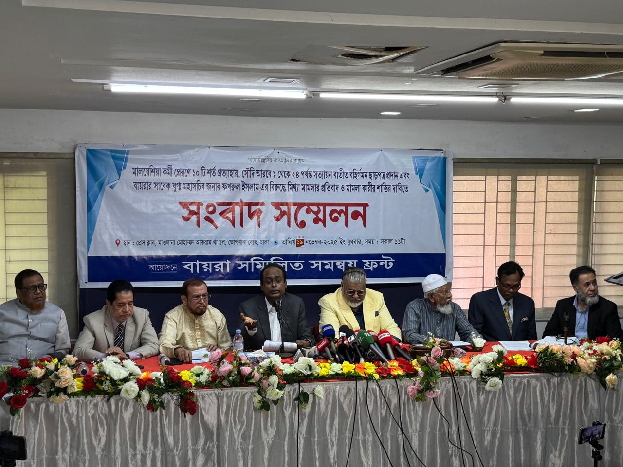 মালয়েশিয়ায় কর্মী প্রেরণে ১০ টি শর্ত প্রত্যাহারসহ বিভিন্ন দাবিতে বায়রার সংবাদ সম্মেলনবায়রার সাবেক যুগ্ম মহাসচিব ফখরুল ইসলামের বিরুদ্ধে মিথ্যা মামলা প্রত্যাহার ও দোষীদের শাস্তির দাবি