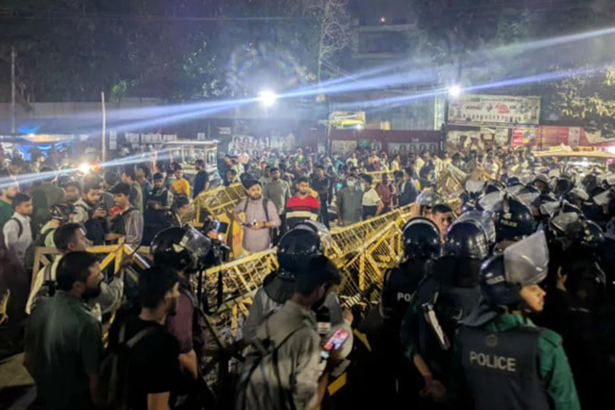 পুলিশ আন্দোলনকারীদের ছত্রভঙ্গ করতে জলকামান থেকে পানি ও সাউন্ড গ্রেনেড নিক্ষেপ করেছে। এসময় ঘণ্টাখানেক ধরে ধাওয়া-পাল্টা ধাওয়ার পর সন্ধ্যায় আন্দোলনকারীরা শাহবাগ থানার সামনে অবস্থান নিয়ে বিক্ষোভ শুরু করেছে।