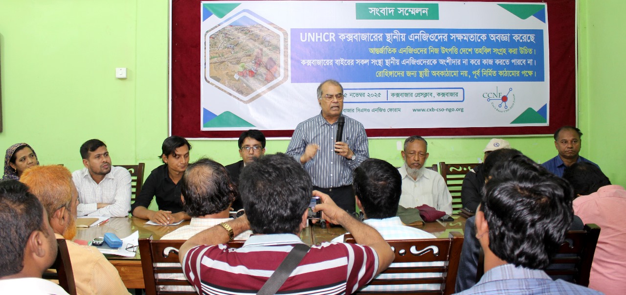 আজ কক্সবাজারের প্রেস ক্লাবে কক্সবাজার সিএসও এনজিও ফোরাম (সিসিএনএফ) এর আয়োজনে “UNHCR কক্সবাজারের স্থানীয় এনজিওদের সক্ষমতাকে অবজ্ঞা করেছে” শীর্ষক ব্যানারে একটি সংবাদ সম্মেলনের আয়োজন করা হয়েছে।