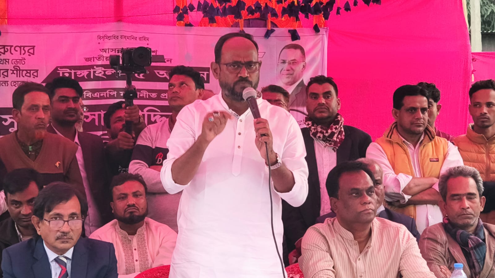 বাঘিল ইউনিয়ন বিএনপির সভাপতি গোলাম সরোয়ারের সভাপতিত্বে অনুষ্ঠিত সভায় আরও বক্তব্য রাখেন টাঙ্গাইল জেলা বিএনপির সভাপতি হাসানুজ্জামিল শাহীন, সদর উপজেলা বিএনপির সভাপতি আজগর আলী, সাবেক মন্ত্রী প্রয়াত মেজর জেনারেল (অব.) মাহমুদুল হাসানের জ্যেষ্ঠ পুত্র ইঞ্জিনিয়ার রাশেদ হাসান এবং জেলা কৃষক দলের সদস্য সচিব মো. শামীমুর রহমান খান (ভিপি শামীম)। এসময় বিএনপি ও অঙ্গসংগঠনের বিভিন্ন স্তরের নেতাকর্মীরা উপস্থিত ছিলেন।