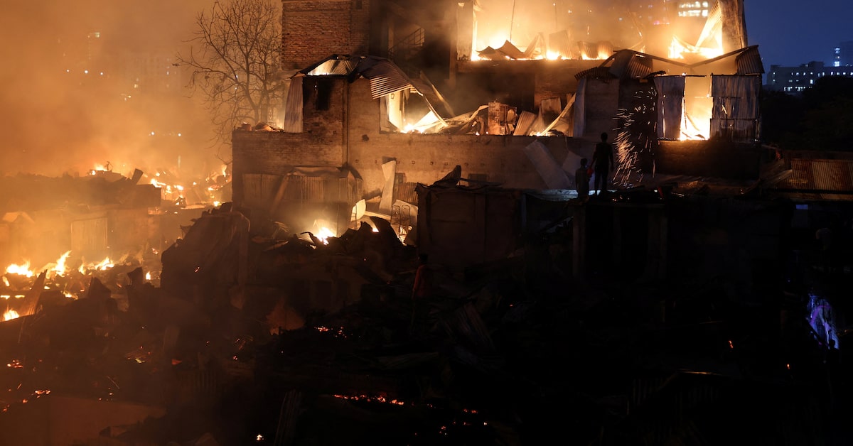 The slum’s tightly packed structures—built with tin, bamboo, and wood—enabled the fire to spread rapidly from one home to another.