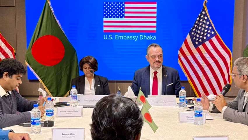 The US ambassador said he is excited to lead a great team at Embassy Dhaka, Americans and locally employed staff alike, to "enhance US-Bangladesh relations, advance President Trump's agenda, and work hard every day to make America safer, stronger, and more prosperous."