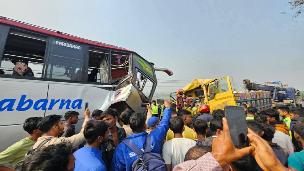 According to him, a Dhaka-bound bus from Barishal crashed into a truck coming from opposite direction, leaving truck’s helper killed on the spot and 11 others injured.