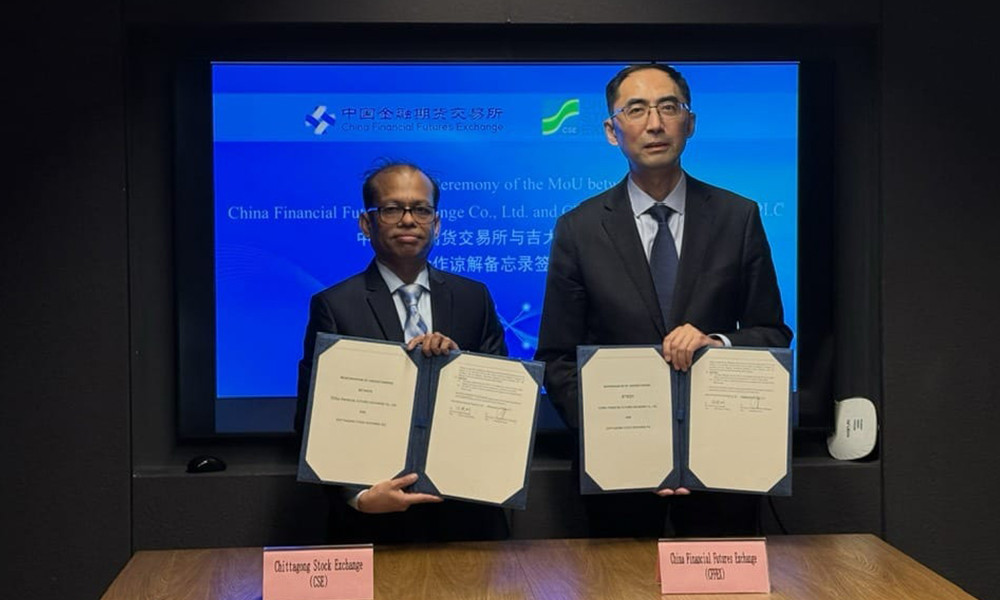 The Chittagong Stock Exchange PLC (CSE) has signed a Memorandum of Understanding (MoU) with the China Financial Futures Exchange Co. Ltd. (CFFEX) to strengthen bilateral cooperation in developing a sustainable derivatives market in Bangladesh.