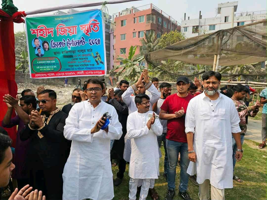 (ছবির বাম পার্শ্বে সাদা পাঞ্জাবী ও চশমা পরিহিত ব্যক্তি রামপুরা থানা যুবদলের আহবায়ক কামাল আহমেদ দুলু এবং ডান পার্শ্বে সাদা পাঞ্জাবী ও দাড়িওয়ালা ব্যক্তি ইমামুদ্দিন নোমান)
