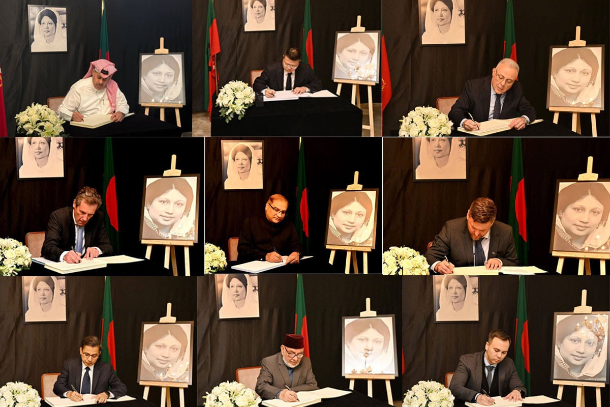 এরই মধ্যে শোকবইয়ে স্বাক্ষর করেছেন চীনের রাষ্ট্রদূত ইয়াও ওয়েন, ভারতের হাইকমিশনার প্রণয় ভার্মা, পাকিস্তান, নেদারল্যান্ডস, সুইজারল্যান্ড, জার্মানি, ইরান, ওমান, আলজেরিয়া, কাতার, ফ্রান্স, নরওয়ে, সুইডেন, ব্রুনাই, ফিলিস্তিন, স্পেন, মরক্কো, ভুটান, ব্রাজিলসহ ২৮ দেশের প্রতিনিধি।