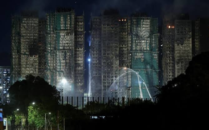 Firefighters had mostly doused the blaze that had torn through the Wang Fuk Court housing complex in the northern district of Tai Po, which had been undergoing renovations.