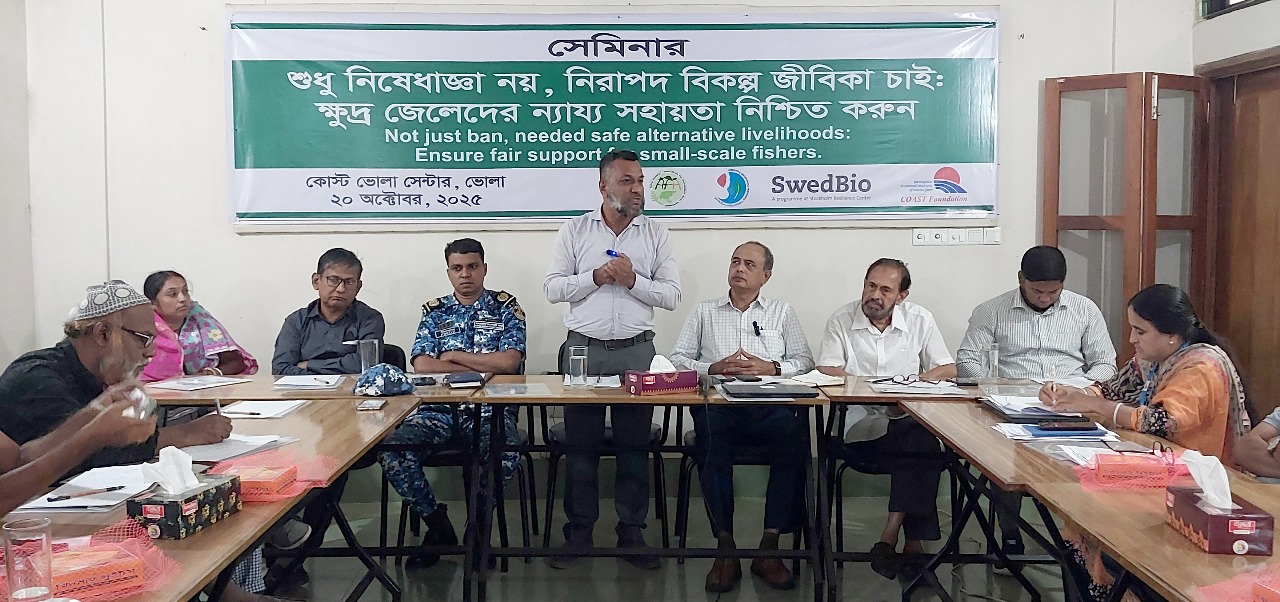 The seminar was moderated by Sanat Kumar Bhowmik, Deputy Executive Director, COAST Foundation. It was presided over by Mobasshir Ullah Chowdhury, Member, General Council, COAST Foundation. Md. Iqbal Hossain, District Fisheries Officer, Bhola, attended as the Chief Guest.