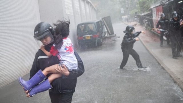 Most shops and public services were shut, and more than 800 flights have been cancelled at Hong Kong International Airport - affecting more than 100,000 passengers.