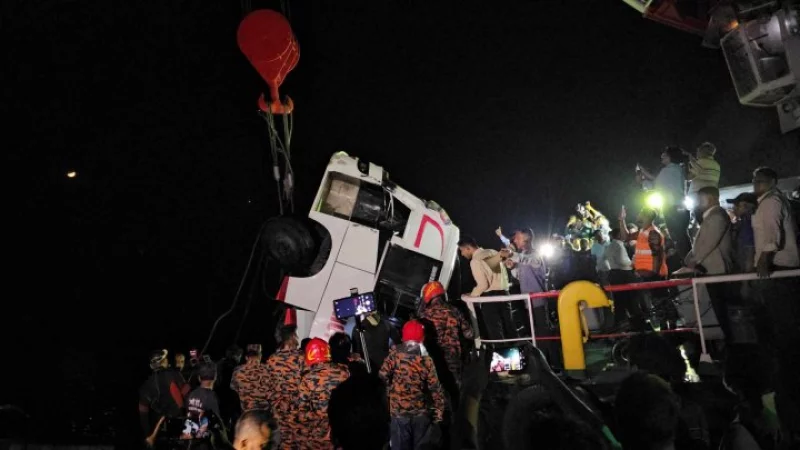 The passenger bus, which plunged into the river while boarding a ferry, was lifted approximately after six hours by the rescue vessel Hamza. Parts of the bus became visible around 11:15pm, and it was fully hauled above water using a crane by about 11:30pm.