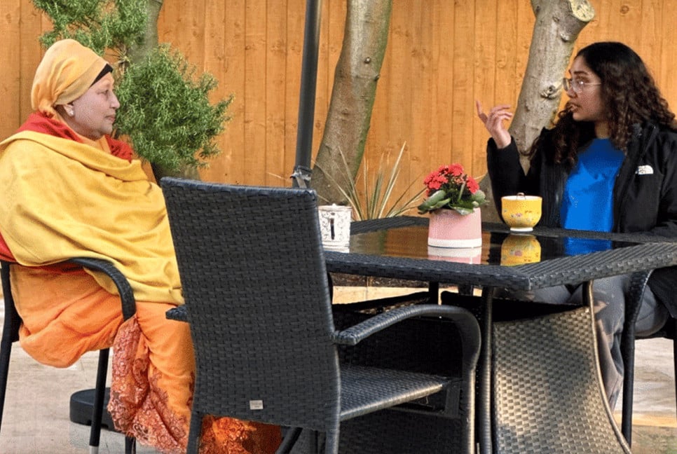 With the poem, Zaima posted an image of herself with Khaleda Zia, where Zaima seems to be talking with her grandmother with animated hand gestures.i
